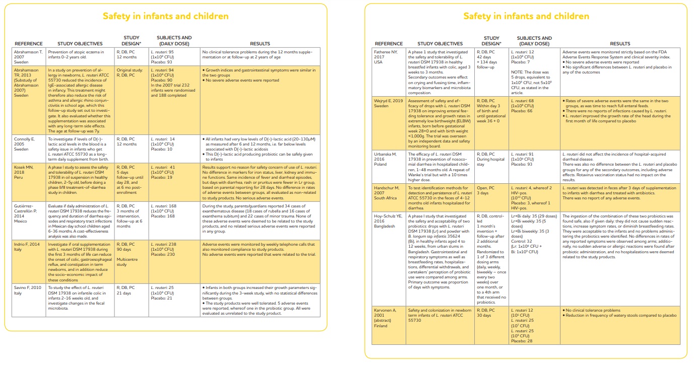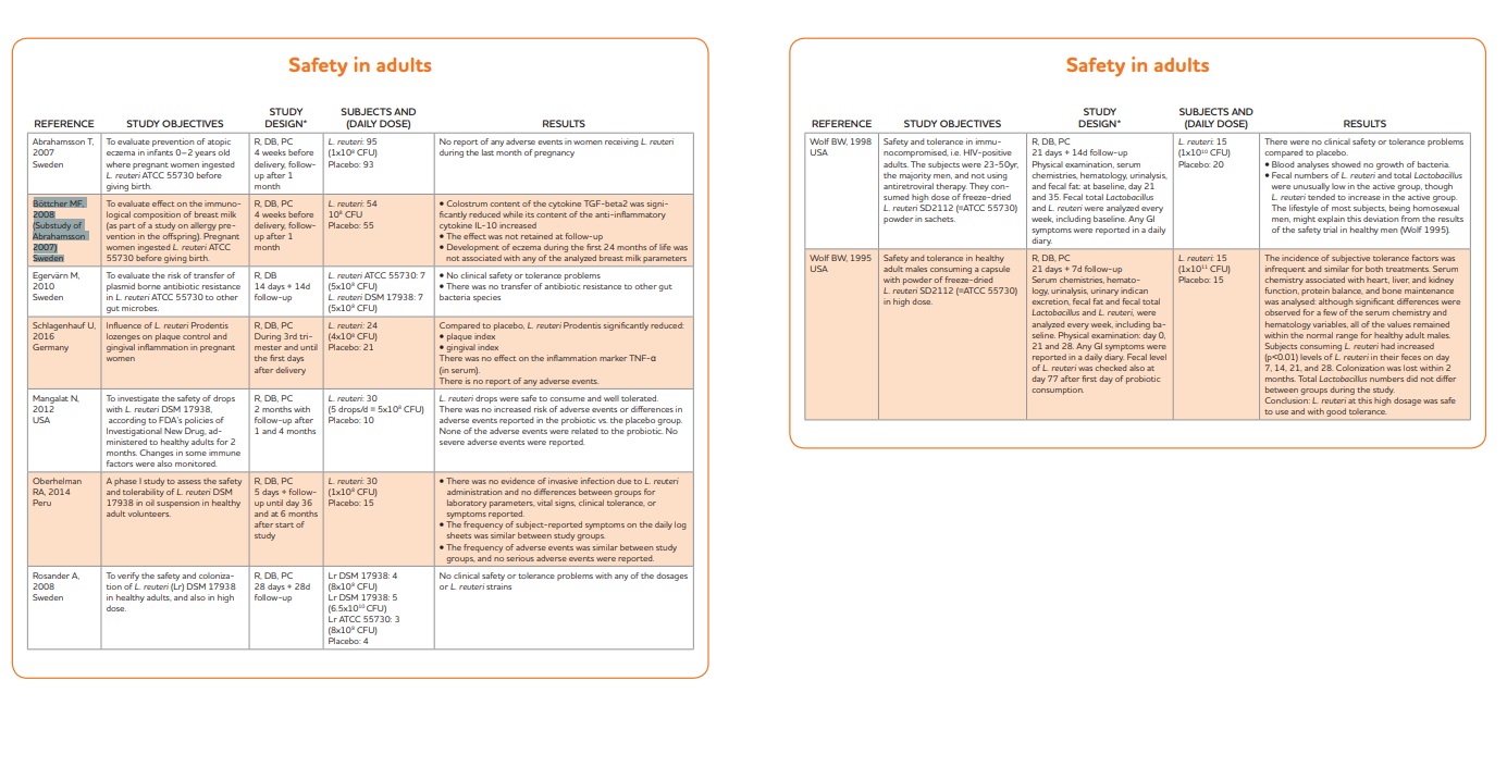 - BioGaia đã thực hiện 9 nghiên cứu với >500 người trưởng thành, đặc biệt trên các đối tượng nhạy cảm như phụ nữ có thai.